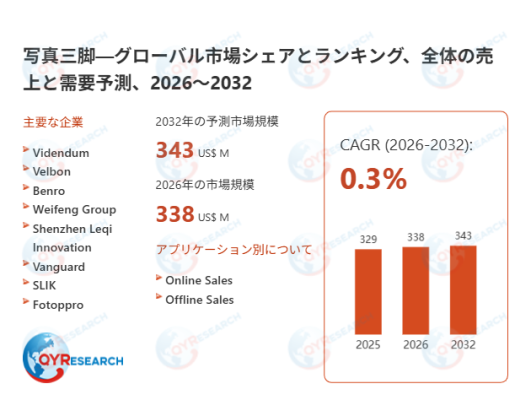 本記事は、QY Research発行のレポート「写真三脚―グローバル市場シェアとランキング、全体の売上と需要予測、2026~2032」に基づき、市場動向および競合分析の概要を解説します。