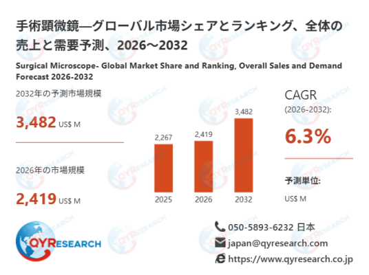 本記事は、QY Research発行のレポート「手術顕微鏡―グローバル市場シェアとランキング、全体の売上と需要予測、2026~2032」に基づき、市場動向および競合分析の概要を解説します。
