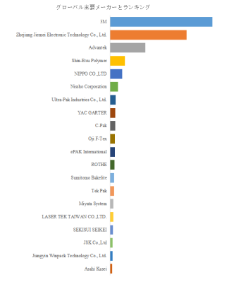 LP Informationのトップ企業研究センターによると、キャリアテープの世界的な主要製造業者には、3M、Zhejiang Jiemei Electronic Technology Co., Ltd.、Advantek、Shin-Etsu Polymer、NIPPO CO.,LTD、Nissho Corporation、YAC GARTER、Ultra-Pak Industries Co., Ltd.、C-Pak、Oji F-Texなどが含まれている。