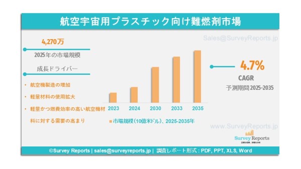 詳細レポートへのアクセスはこちら: https://www.surveyreports.jp/industry-analysis/flame-retardants-for-aerospace-plastics-market/1038433