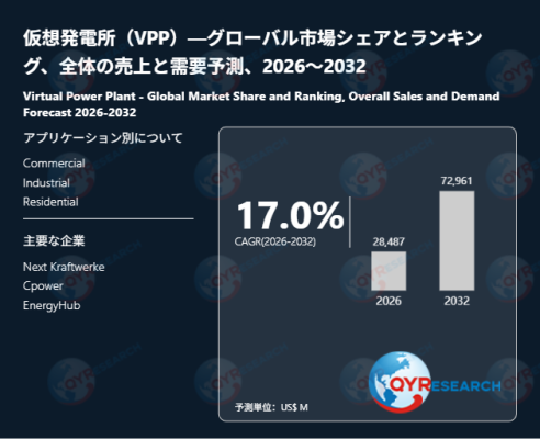 本記事は、QY Research発行のレポート「仮想発電所(VPP)―グローバル市場シェアとランキング、全体の売上と需要予測、2026~2032」に基づき、市場動向および競合分析の概要を解説します。