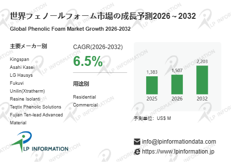 LP Information調査チームの最新レポートである「世界フェノールフォーム市場の成長予測2026~2032」(https://www.lpinformation.jp/reports/585619/phenolic-foam)によると、グローバルフェノールフォーム市場は2032年までに22.03億米ドル規模へ拡大する見通しである。