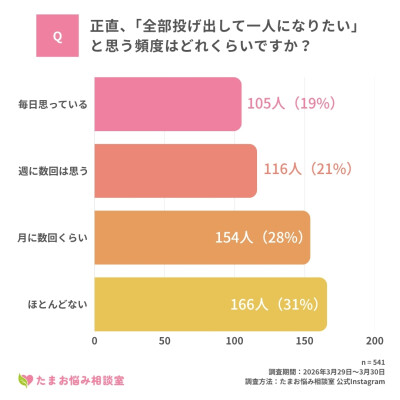 【質問】正直、「全部投げ出して一人になりたい」と思う頻度はどれくらいですか?