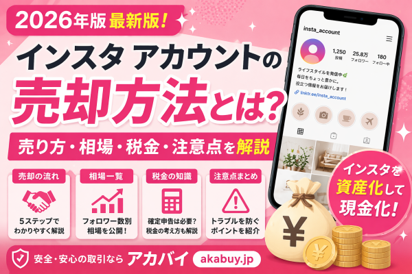 SNSアカウント売買サイト、アカバイ( https://akabuy.jp )を運営する合同会社MYASIA Entertainment(本社:東京都)は、このたび、2026年時点におけるインスタアカウントの売却方法について、実務上の相談傾向をもとに整理し公開いたします。近年は「インスタ アカウント 売却」「インスタ 売り方」「インスタアカウント 相場」「SNSアカウント 税金」などの検索が増加しており、運用だけでなく“売却して現金化する”という選択肢への関心も高まっています。