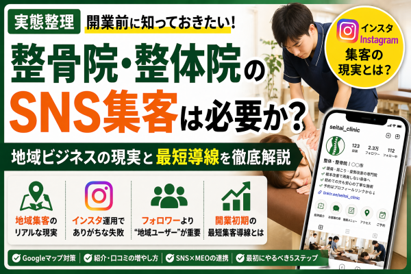 整骨院・整体院の開業において、従来はチラシや紹介が中心でしたが、近年はインスタやGoogleマップなどオンライン導線の重要性が高まっています。特に「整体院 インスタ 集客」「整骨院 Instagram 運用」「整体院 SNS 運用 方法」などの検索からも分かる通り、SNS運用を前提とした開業が一般化しています。