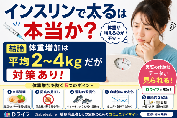 「インスリンを使うと必ず太る」というイメージがありますが、実際にはコントロール可能な範囲の変化であることが多く、適切な管理を行えば大きな問題にならないケースも多くあります。