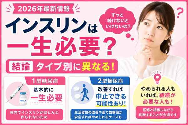 インスリン治療を始めたとき、「これから一生続けなければいけないのか」と不安に感じる方は非常に多く見られます。結論から言うと、インスリンが一生必要かどうかは糖尿病のタイプや状態によって異なります。