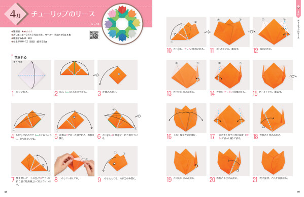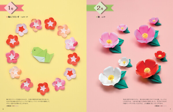 春の訪れを感じる梅や桜、夏の風物詩のあさがお、秋冬の季節を彩る花々まで、著者オリジナルの美しい花の折り紙作品を12か月に分けて紹介。季節ごとに楽しみながら、一年を通して花折り紙の魅力を味わえます。
