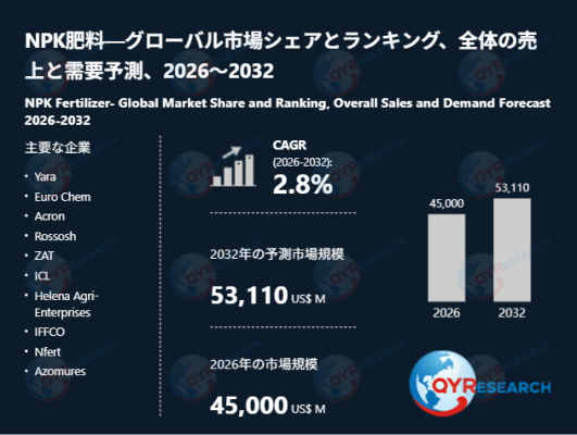 本記事は、QY Research発行のレポート「NPK肥料―グローバル市場シェアとランキング、全体の売上と需要予測、2026~2032」に基づき、市場動向および競合分析の概要を解説します。
