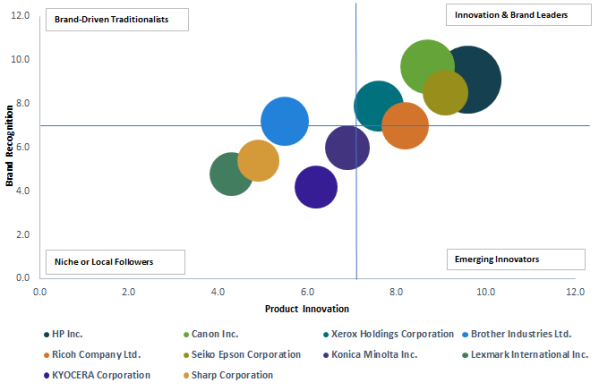 高度な製品の投入、戦略的買収、業務能力の強化に重点が置かれている。同時に、人工知能、自動化、データ分析を組み合わせたインテリジェントな印刷エコシステムの開発が進められている。これらのシステムは、生産性の向上、セキュリティの強化、企業の業務プロセスとのシームレスな統合を実現することを目的としている。