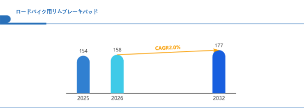 Global Reports調査チームの最新レポート「グローバルロードバイク用リムブレーキパッド市場規模、主要企業シェア、ランキング分析レポート【2026年版】」によると、2026年の158百万米ドルから2032年には177百万米ドルに成長し、2026年から2032年の間にCAGRは2.0%になると予測されています。