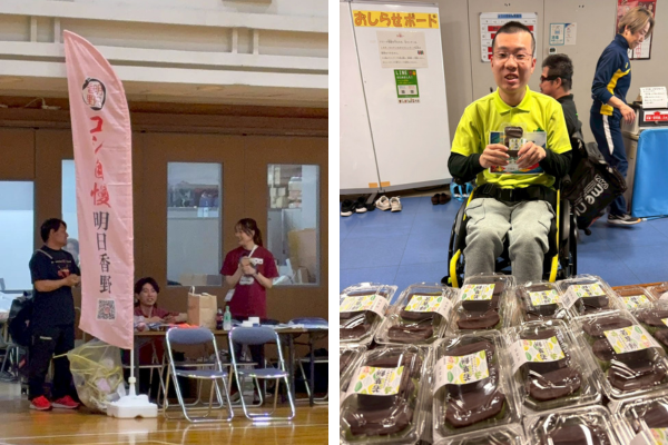 明日香野は「若草餅」「プチ白あんこ餅」を選手やスタッフにお届け。試合の合間やリカバリー時間に、選手たちが和菓子を手に取っていました。口当たりの柔らかさとエネルギー補給のしやすさは、重度障がいのある選手にとっても特にありがたい存在となり、「食べやすい」「ちょうどいい甘さで力が戻る」などの声が多く聞かれました。長時間にわたり運営を支えるスタッフにとって「ほっと一息つけるひと口」にもなりました。