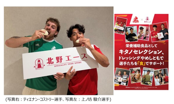 2025年に、株式会社エースは兵庫県神戸市に本拠地を構えるNTTジャパンラグビーリーグワンディビジョン1所属、コベルコ神戸スティーラーズとパートナー契約を締結。笑顔あふれる未来をともにというチームビジョンと、株式会社エースの「お客様の喜びが、我々の喜びである」という基本理念が共鳴し、オフィシャルパートナー契約の締結にいたりました。今回のポケットサンド販売のほか、食料品専門店「北野エース」として選手の皆様へ「食」のサポートも実施中。プライベートブランド“キタノセレクション”のドレッシングやジャム、めしともをはじめ、おすすめ商品をトレーニング中の栄養補助食として、選手たちに召し上がっていただいています。今後とも、食料品専門店「北野エース」としてコベルコ神戸スティーラーズを応援してまいります!