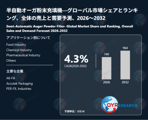 本記事は、QY Research発行のレポート「半自動オーガ粉末充填機―グローバル市場シェアとランキング、全体の売上と需要予測、2026~2032」に基づき、市場動向および競合分析の概要を解説します。