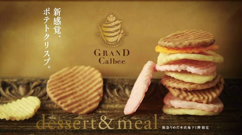 大阪の阪急うめだ本店の地下1階、江崎グリコの「Baton D'or(バトンドール)※」、亀田製菓の「HAPPY Turn's(ハッピーターンズ)」に続く、行列を作るコンセプトショップがまたもオープンした。それが、カルビーの「GRAND Calbee(グランカルビー)」だ。