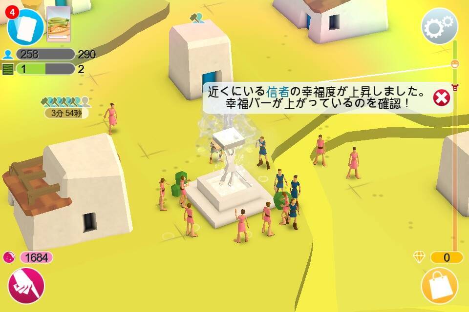 『Godus』は、スマートフォン版『ポピュラス』といった感じ。