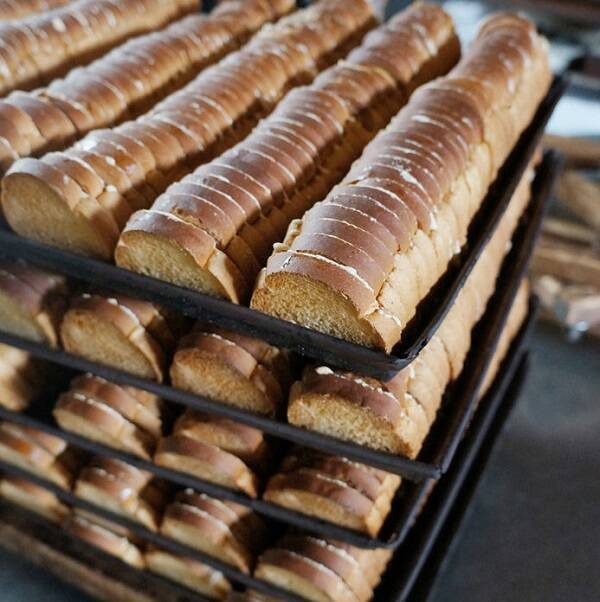 なお、上田製菓本舗ではラスクにするパンを焼く日に、不定期で焼きたてのパンそのものも、わずかながら販売されているそう。普通のパンではなく、ラスク用に配合なども考えたパンというのがとっても気になる……。出合えた人はラッキーかも!