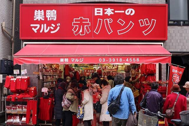 12月末、筆者が巣鴨・地蔵通り商店街を訪れると、申年の赤い肌着の縁起にあやかろうと、「マルジ」に女性客が殺到していた。入口に並べられた赤い肌着を手に取り、「買ったらウチの人はくかなあ」とにぎやかに話す声が聞こえる。店内には大量の赤いパンツが置かれ、「千原ジュニア様ご愛用」と書かれた品もあった。申年の文字やマークのついた肌着の一部が品切れになるほど、売れまくっているらしい。