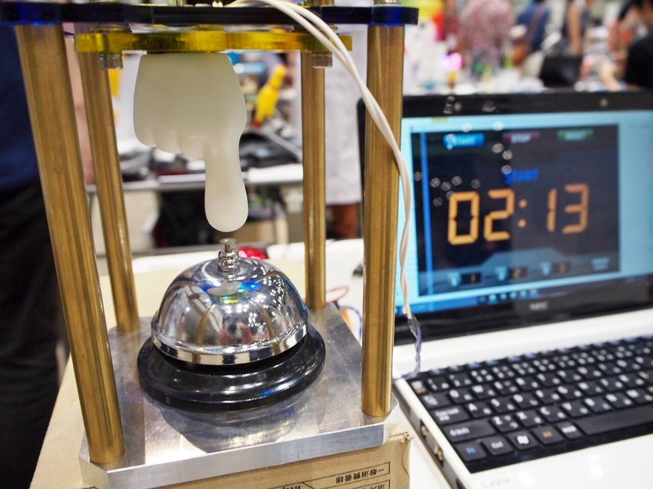 PCのアプリケーションと連動、指定した時間にベルを“チーン”と鳴らしてくれる機械です。時間は1鈴から3鈴まで自由に設定可能。意外と実用的かも?