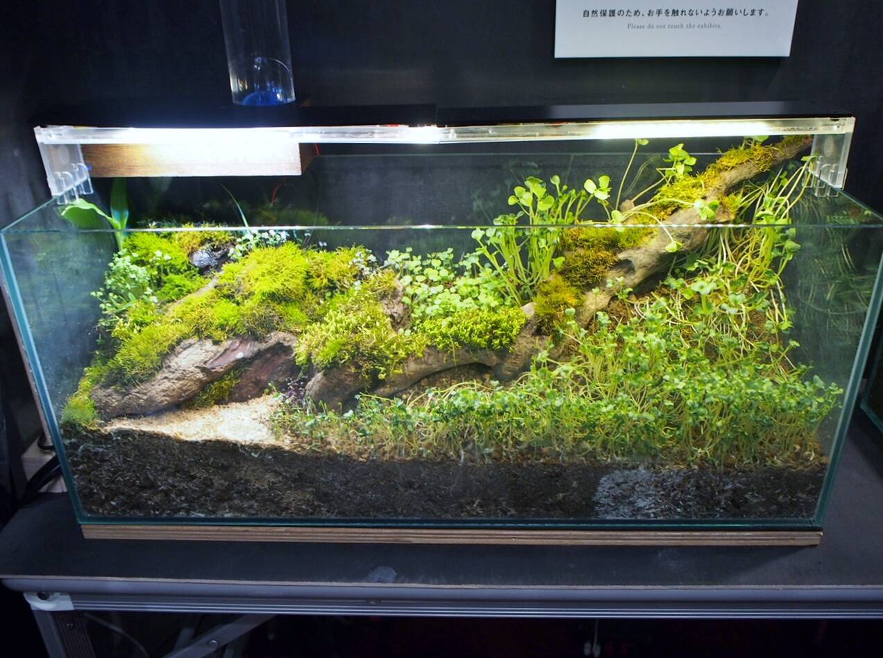 熱帯魚や水草を観て楽しむアクアリウムから一歩進んだ、新しいコンセプトのインテリア。鑑賞だけでなく、自分で育てた有機野菜やキノコを収穫して楽しむこともできます。