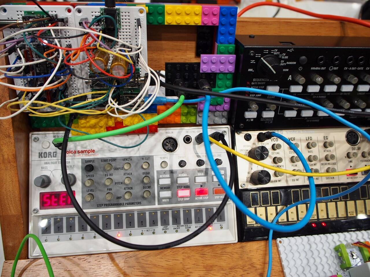 パッチケーブルが複雑に入り組むモジュラーシンセに憧れて、モジャっとしたミキサー付きラックを作ってみた、とのこと。その気持ち、分かりますよ。