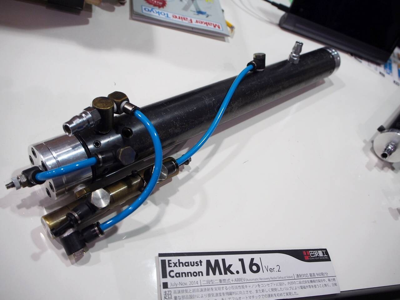 圧縮した空気を爆音とともに瞬間的に開放する、強力な空気砲。実演も見せていただきましたが、なかなかの衝撃音でした。