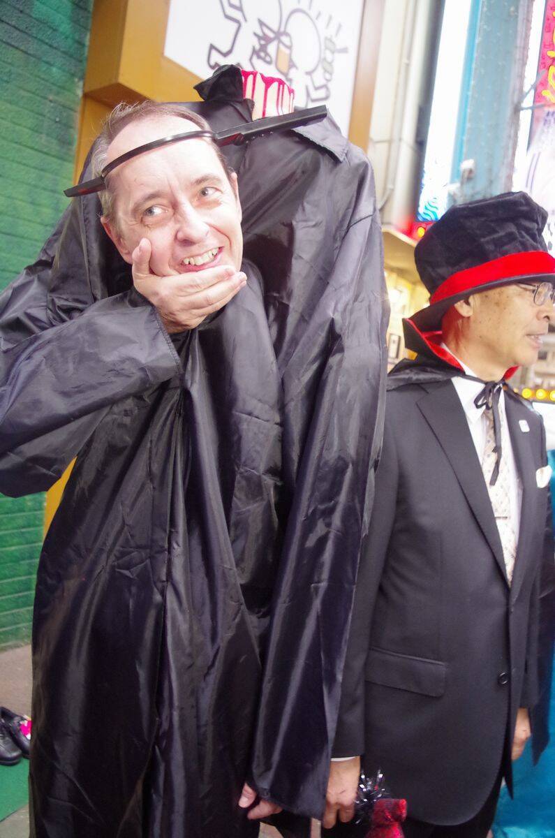 区を巻き込んで行われた、今年の同社のハロウィン企画。タカラトミースタッフ40名、葛飾区職員20名、そしてギャラリー参加者1000名以上もの人たちがパレードに参加したとのこと。地域を盛り上げる地元愛が素晴らしいです! 子どもたちの笑顔もたくさんで、まぶしかったなぁ。……が、社長のコスプレのスプラッタ度はいかがなものか。
