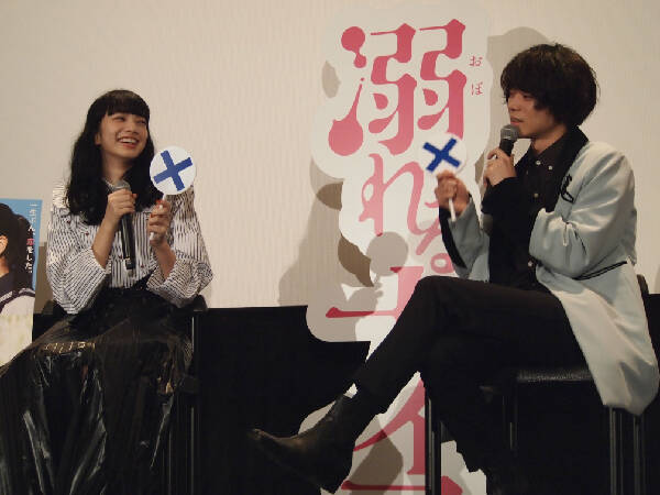 『溺れるナイフ』の撮影は大変だったかと聞かれ、小松、菅田ともに即「〇」のフリップを上げる。
