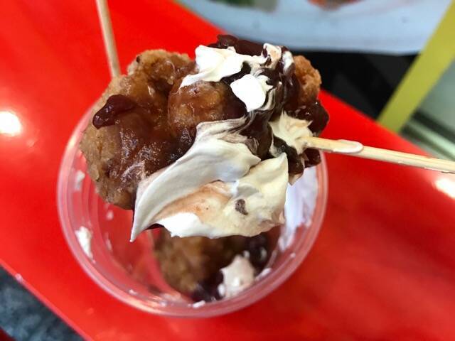 名古屋といえば、「小倉トースト」。トーストにつぶあんを乗せたご当地グルメですが、その小倉餡とクリームを合わせた、変わったから揚げが大須にあるとか。