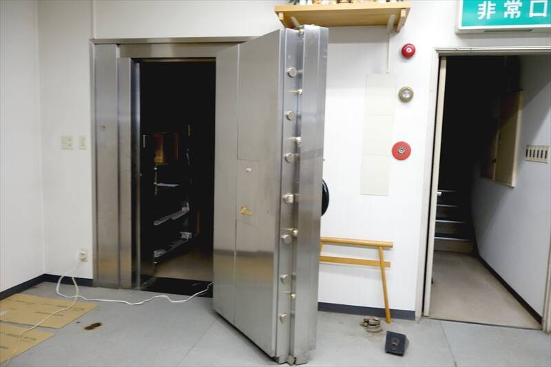 建物の看板こそ、銀行が去ったあとに入居した「鹿角ショッピングスタンプ」になっていたが、内装は基本的に銀行時代のまま。その証拠として、部屋の奥に金庫室があった。