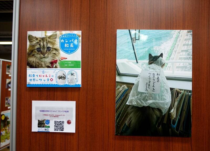 輸送船で暮らす人気猫・カンパチの写真も展示