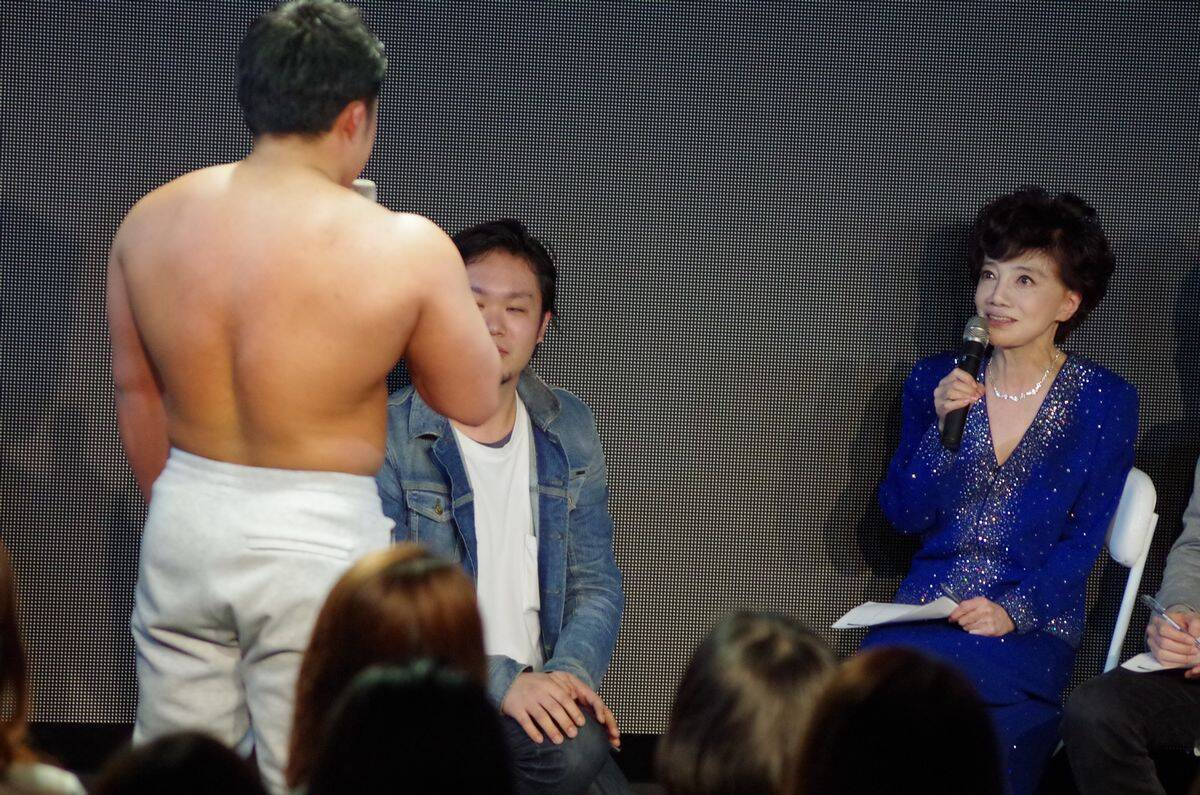とにかく、マッチョをマジマジと審査する松島トモ子という空間がケミストリー起きてます。