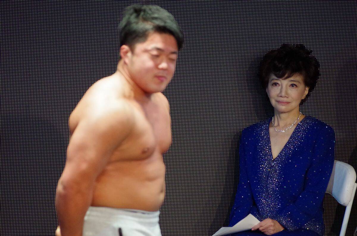 「皆様こんばんは、松島トモ子です。ライオンとヒョウに噛まれても生き残っております。今日は最強のマッチョを皆様と一緒に選びたいと思います」(松島さん)