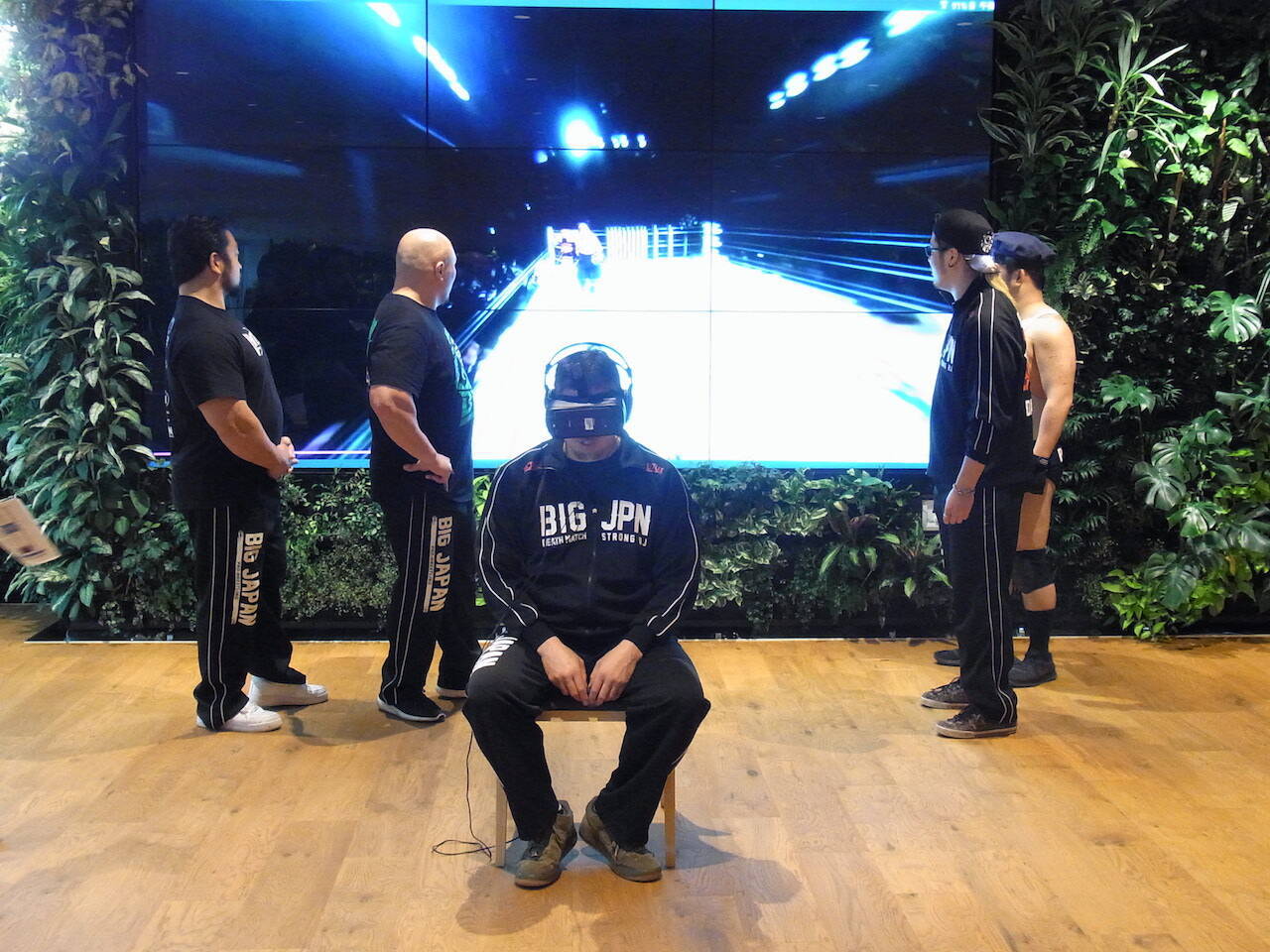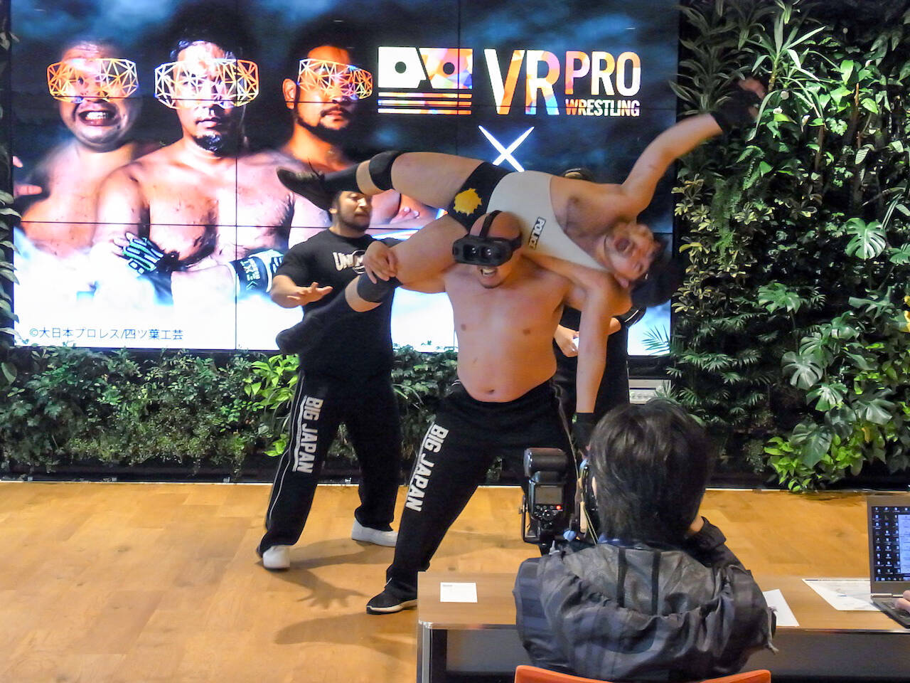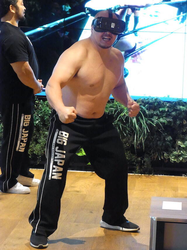 会場では、実際にVRプロレスを体験できるようになっていた。