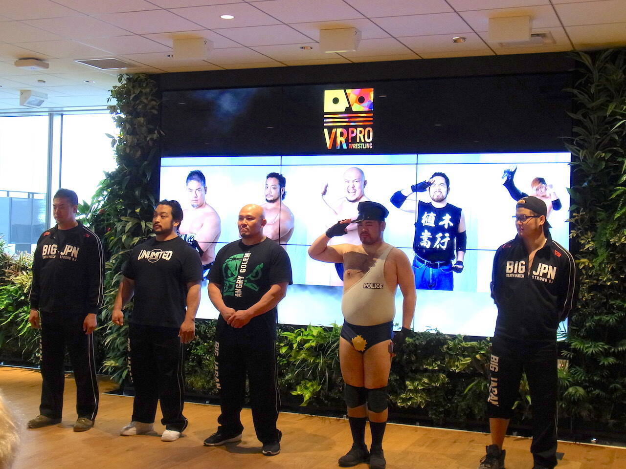 その発表会見が、都内のDMM.com本社で行われた。会見場に現れたのは、大日本プロレスに所属する、伊藤竜二、岡林裕二、関本大介、橋本大地、植木嵩行の5選手。