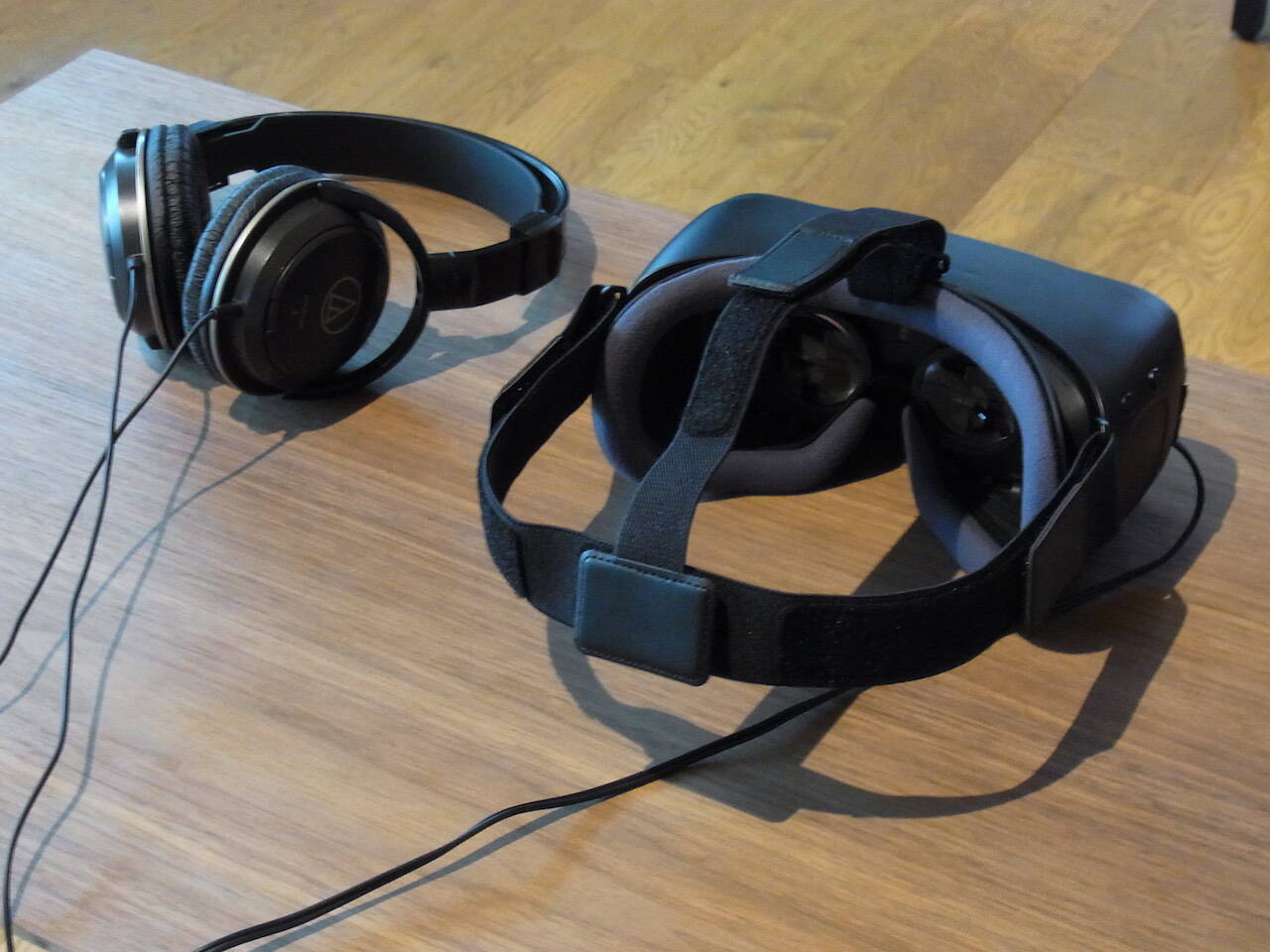 アプリを起動しゴーグルをセット。目の前に、リングの映像が映し出される。
