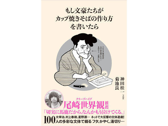 そんなお二人が書かれた「もし文豪たちが カップ焼きそばの作り方を書いたら」は6月7日に発売、価格は1058円(税込)です。Amazonでも予約受付中。カバー絵は田中圭一先生で、帯コメントはクリープハイプの尾崎世界観氏によるもの。田中圭一先生は「もし手塚治虫先生を太宰治を描いたら…を田中圭一が描いたら」なども寄稿されています。「もしも」からはじまる文体模写の面白さを知ることができる一冊、必読です!