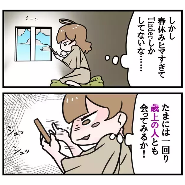 大学時代にマッチングアプリ「Tinder」にハマったさやこちゃんの体験談を漫画化。「Tinder」を使い始めて上級者になっていた私は、これまでとは違う相手を求めてみることに。※この話は、パパ活や援助交...
