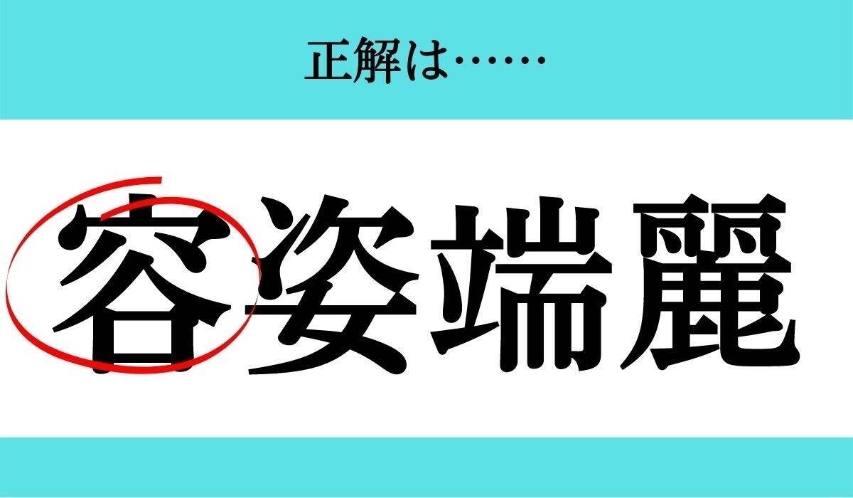 □に入る漢字は「容」、正解の四文字熟語は「容姿端麗」でした!
