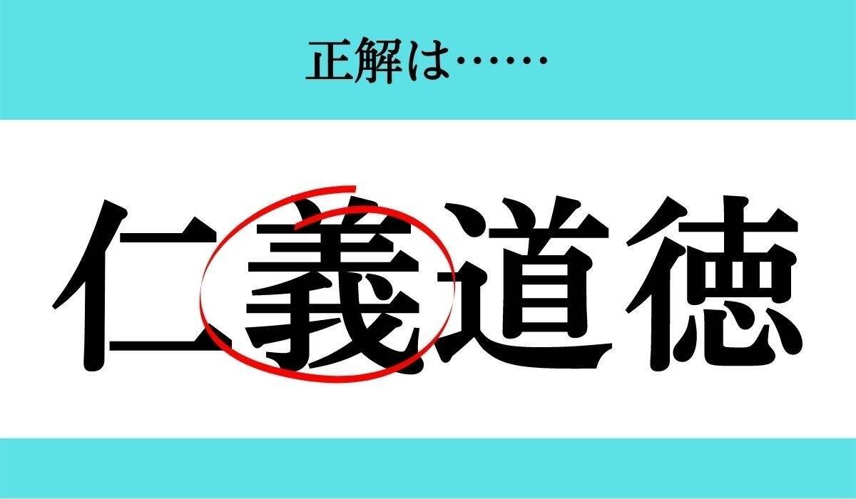 □に入る漢字は「義」、正解の四文字熟語は「仁義道徳」でした!