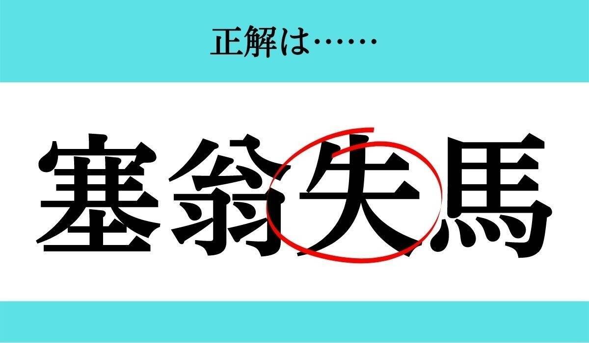 □に入る漢字は「失」、正解の四文字熟語は「塞翁失馬」でした!