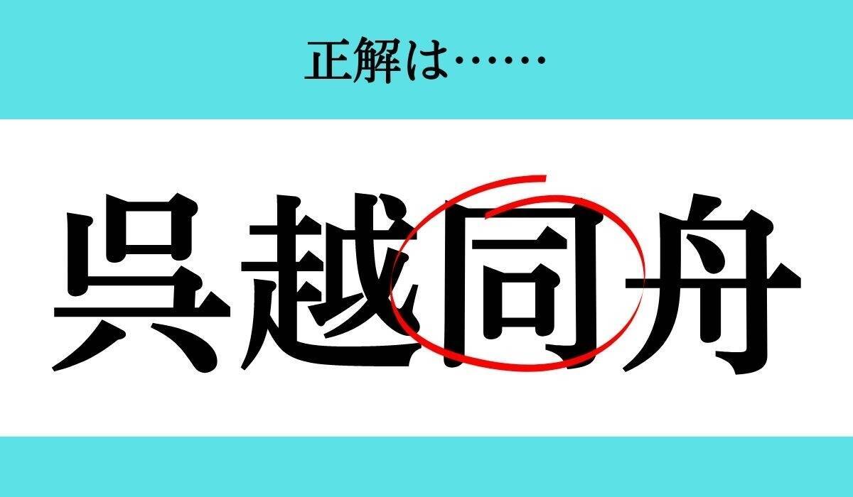 □に入る漢字は「同」、正解の四文字熟語は「呉越同舟」でした!