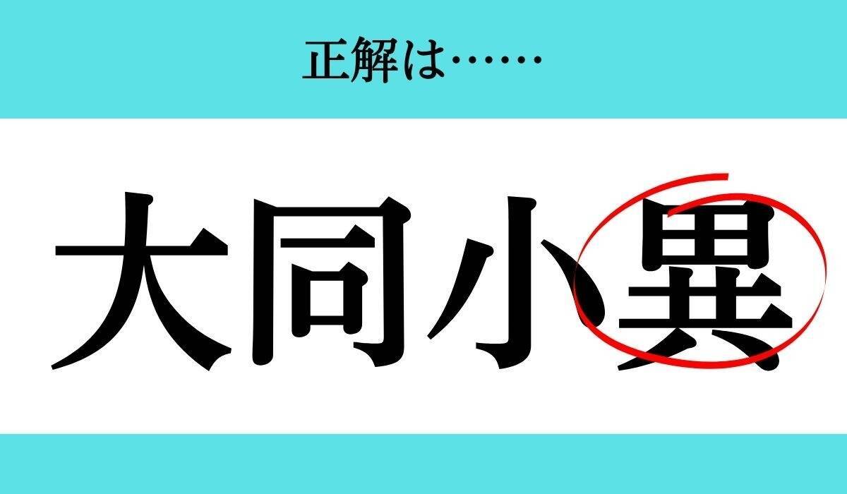 □に入る漢字は「異」、正解の四文字熟語は「大同小異」でした!