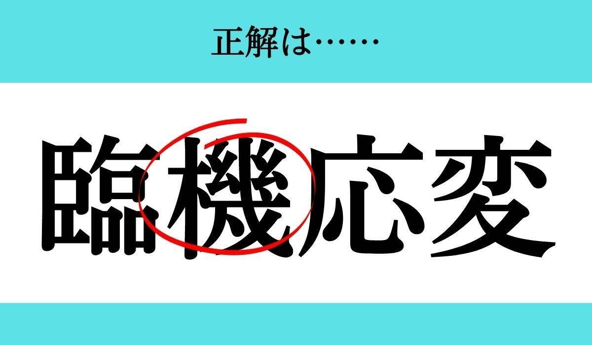 □に入る漢字は「機」、正解の四文字熟語は「臨機応変」でした!