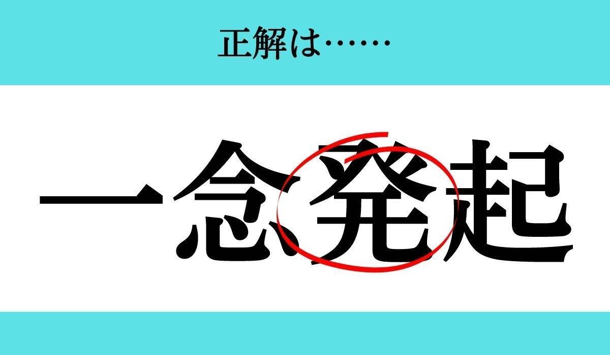 □に入る漢字は「発」、正解の四文字熟語は「一念発起」でした!