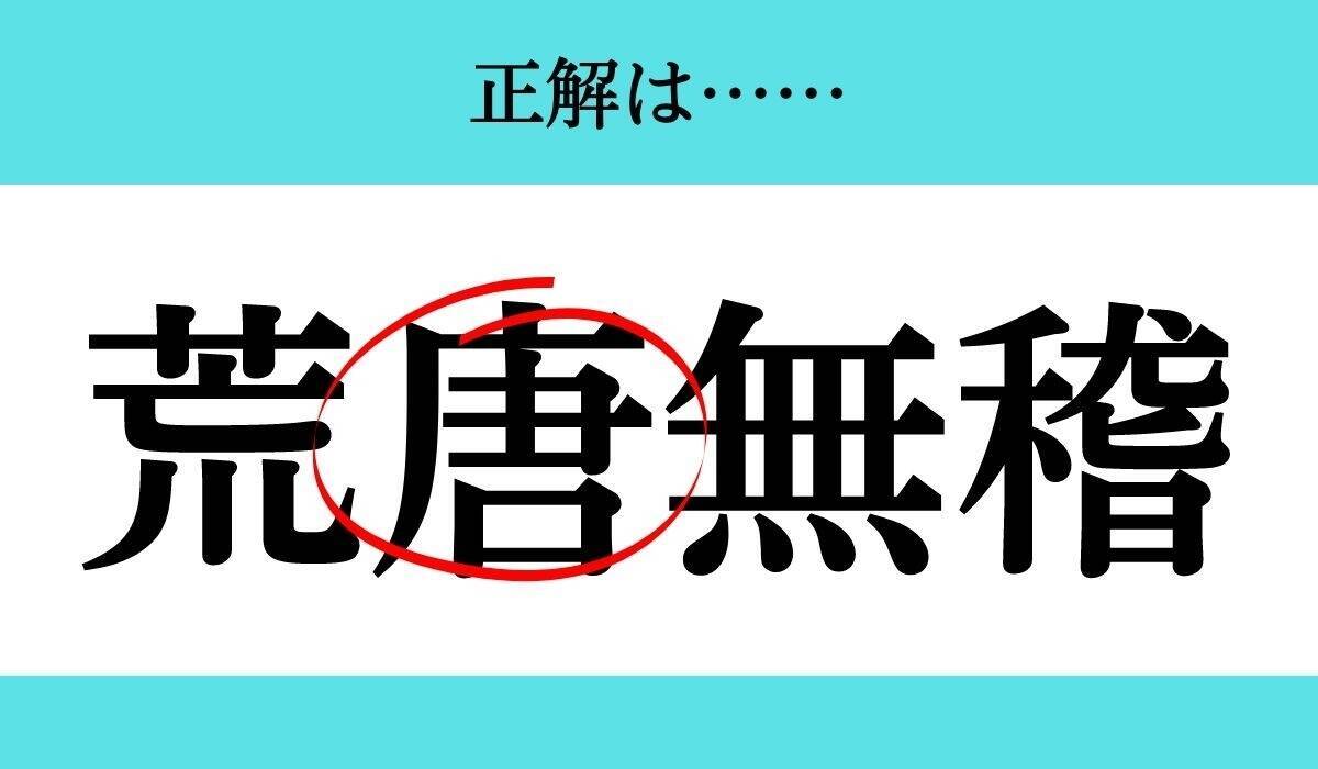 □に入る漢字は「唐」、正解の四字熟語は「荒唐無稽(こうとうむけい)」でした!