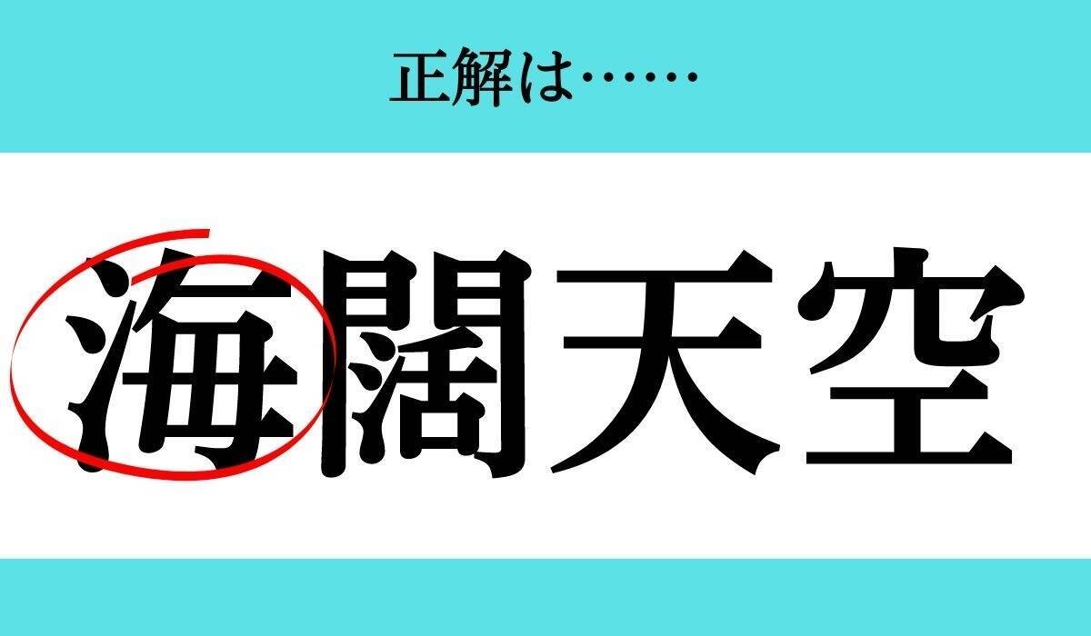 □に入る漢字は「海」、正解の四字熟語は「海闊天空(かいかつてんくう)」でした!
