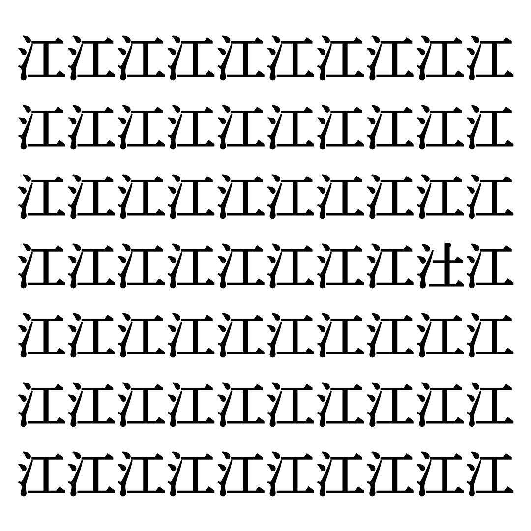 たくさん並んだ同じ漢字の中に、一つだけ違う漢字がまぎれています。仲間外れはどの漢字かわかりますか?