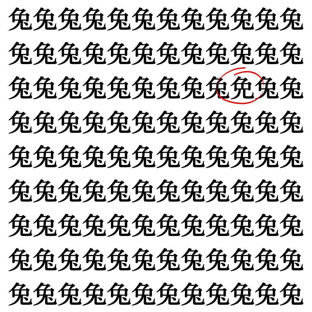 【漢字探し】ずらっと並んだ「回」の中にまぎれた別の漢字一文字は?