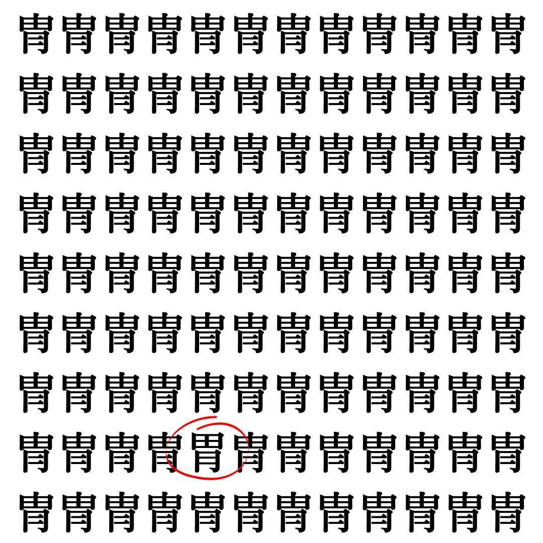 【漢字探し】ずらっと並んだ「回」の中にまぎれた別の漢字一文字は?